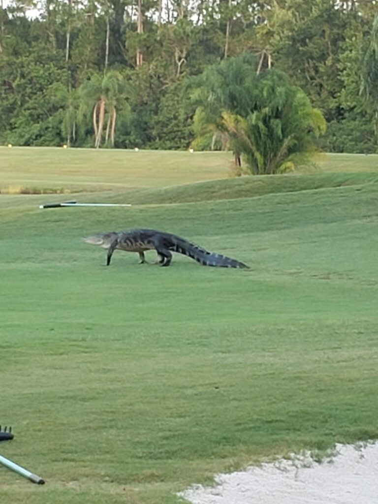 I’ve seen turkeys at Disney that were roughly the size of golf carts. Plenty of deer. Bald eagles. Hawks. Owls. Raccoons in the middle of the day I am SURE had rabies! I’ve even had to stop play and let an eight- or nine-foot alligator casually walk across the fairway at Lake Buena Vista. That thing didn’t rush. It didn’t acknowledge us. It just crossed right to left and disappeared into the water like it owned the place. Which it probably did.